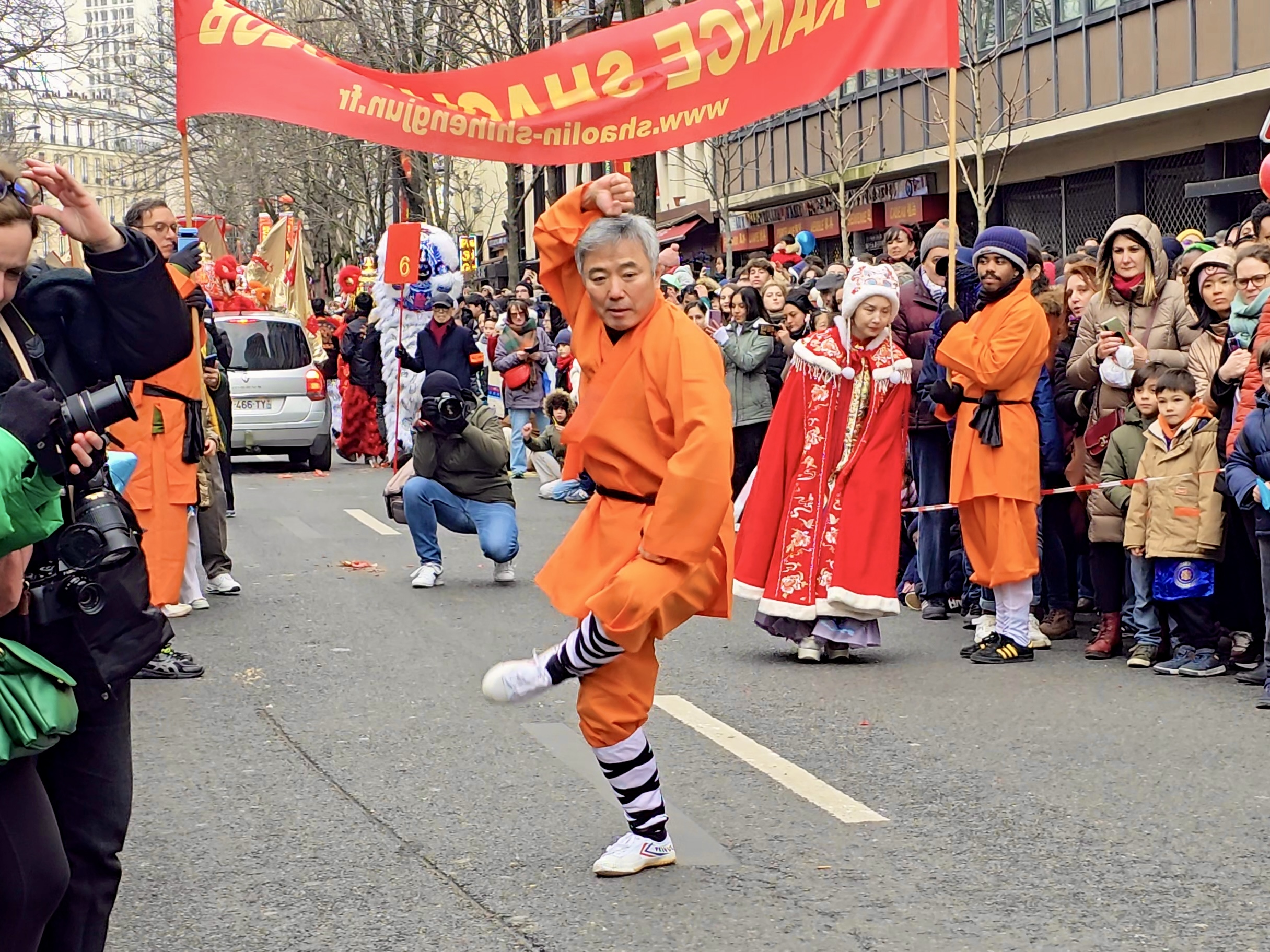 Comme chaque année, nous avons eu l’honneur (et le plaisir) de pouvoir prendre place dans le cortège du défilé, pour partager les arts martiaux chinois avec les petits et les grands venus se rassembler dans le 13ème arrondissement.