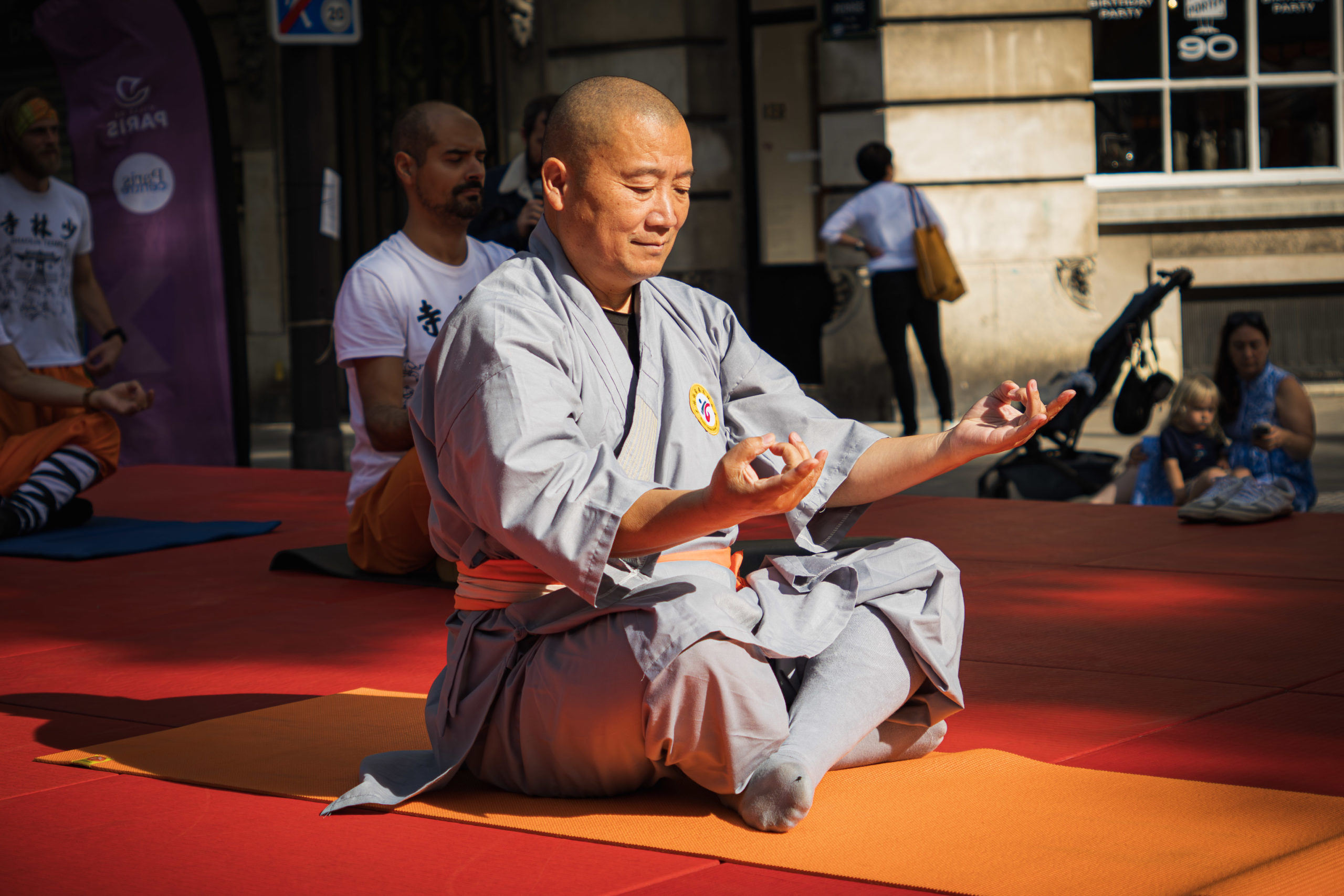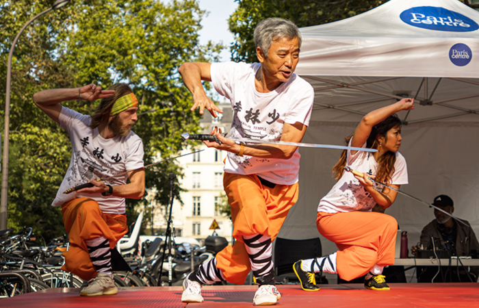 Comme chaque année, l’association a eu le plaisir de tenir son stand au forum des associations de Paris Centre. Nous avons eu le plaisir cette année d’avoir notre Maître à nos côtés, pour accueillir et renseigner le public, et leur faire découvrir notre club avec des démonstrations de Qi Gong, Kung Fu interne et externe, l’épée de Shaolin et la méditation. (© Photos : Joan Larcher / Vidéos : Alice)